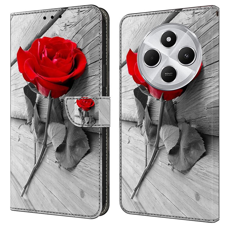 Phone Case For Xiaomi Redmi 14C 4G / 14R 5G / Poco C75 4G Magnetic Clasp 3D Pattern Leather Wallet Phone Cover - Rose
