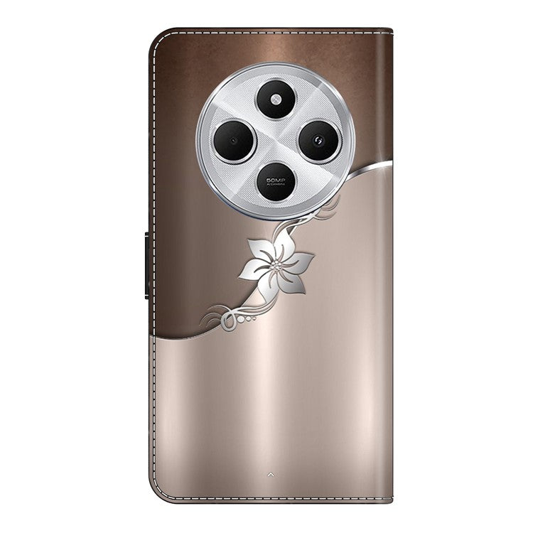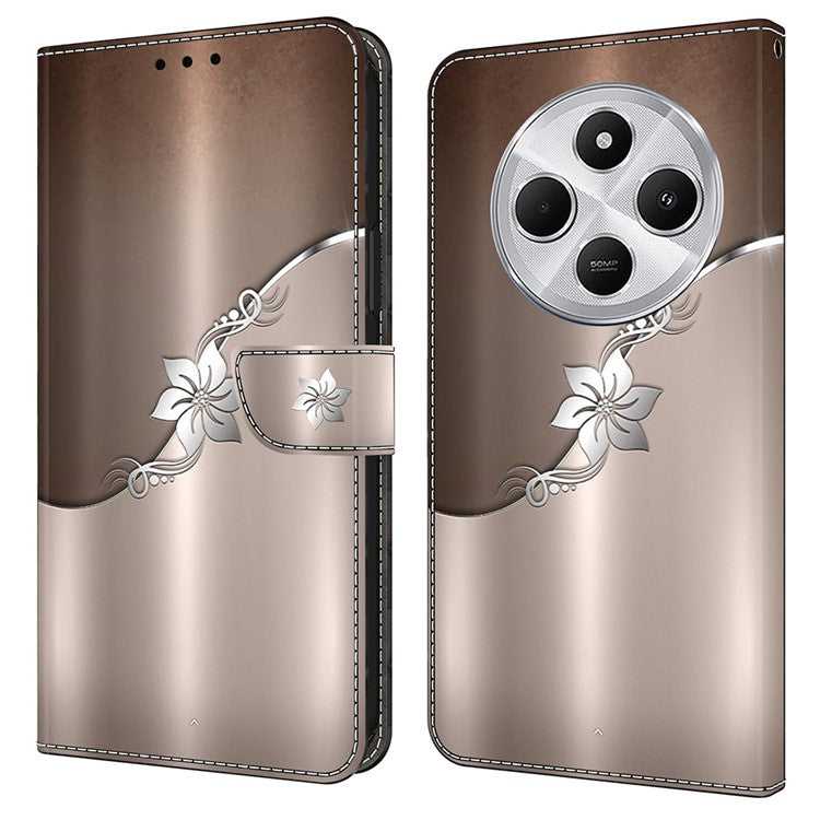Phone Case For Xiaomi Redmi 14C 4G / 14R 5G / Poco C75 4G Magnetic Clasp 3D Pattern Leather Wallet Phone Cover - Silver Flower