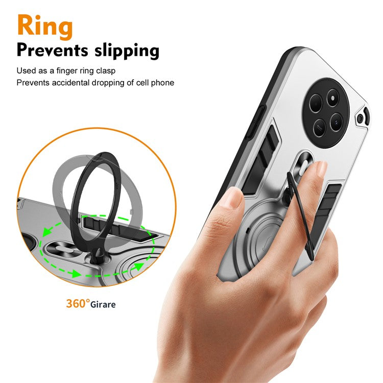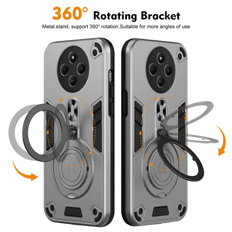 Phone Case For Xiaomi Redmi 14C 4G / 14R 5G / Poco C75 4G PC+TPU Drop Protection Back Cover with Rotatable Kickstand - Silver