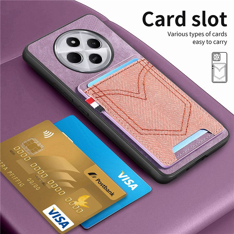 Phone Case For Xiaomi Redmi 14C 4G / 14R 5G / Poco C75 4G Retro Jean Cloth Texture Leather Back Cover Card Holder - Purple
