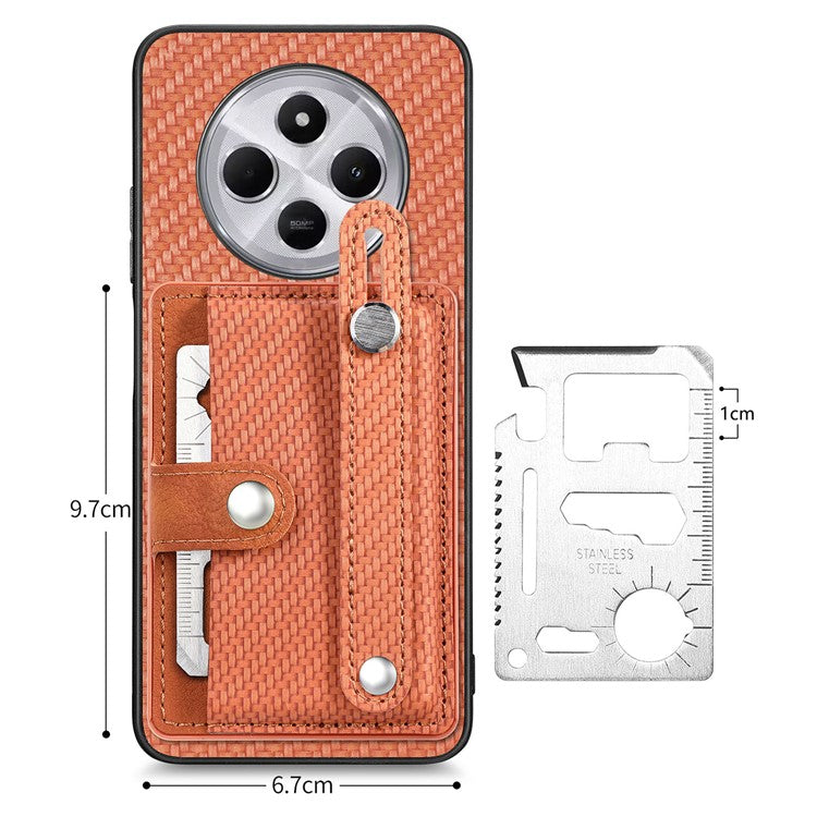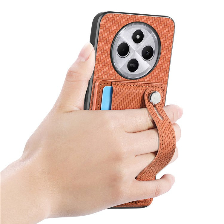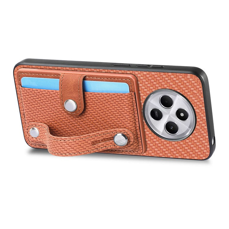 Phone Case For Xiaomi Redmi 14C 4G / 14R 5G / Poco C75 4G Wristband Anti-Drop Leather Back Cover Card Holder - Brown