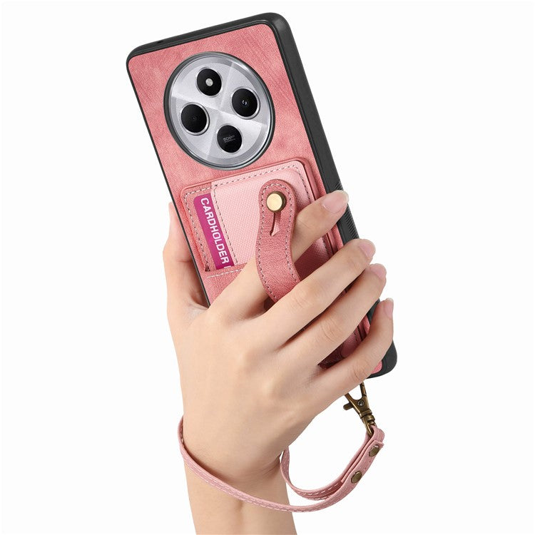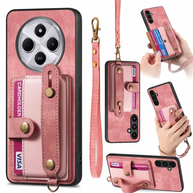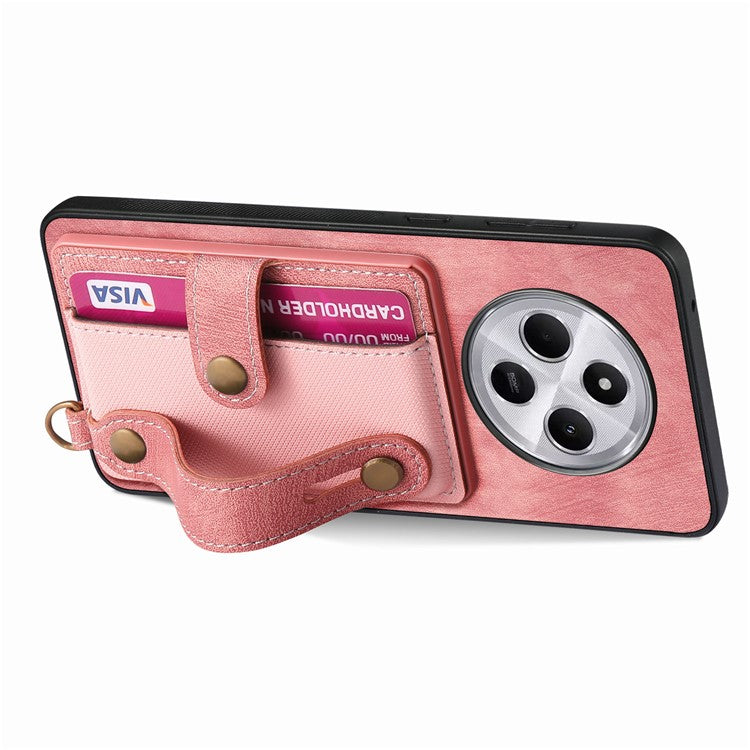 Phone Case For Xiaomi Redmi 14C 4G / 14R 5G / Poco C75 4G Wristband Kickstand PU Leather Retro Back Cover Card Holder - Pink