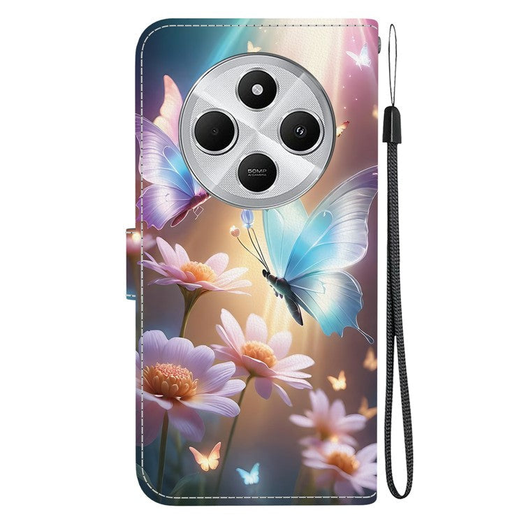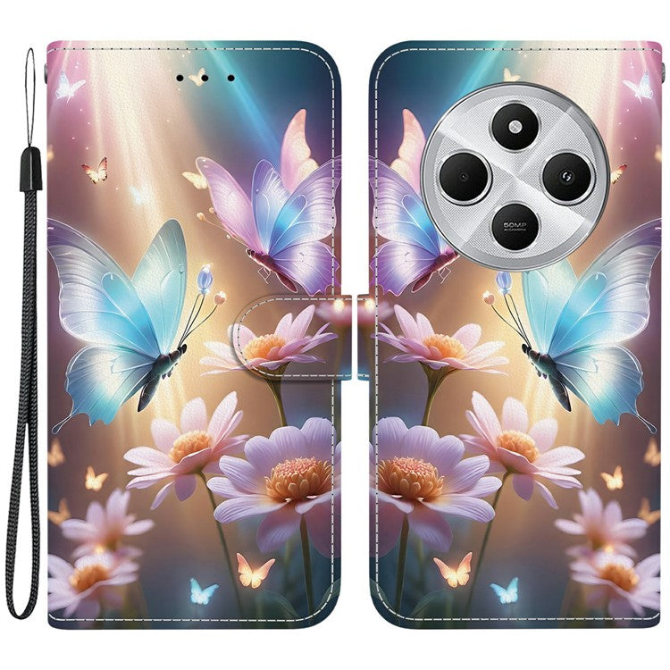Phone Case For Xiaomi Redmi 14C 4G / Redmi 14R 5G / Poco C75 4G Pattern Printing Leather Flip Wallet Cover with Lanyard - Butterfly Floral