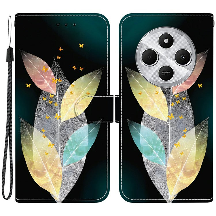 Phone Case For Xiaomi Redmi 14C 4G / Redmi 14R 5G / Poco C75 4G Pattern Printing Leather Flip Wallet Cover with Lanyard - Colored Leaves