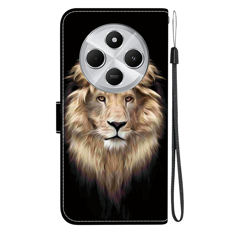 Phone Case For Xiaomi Redmi 14C 4G / Redmi 14R 5G / Poco C75 4G Pattern Printing Leather Flip Wallet Cover with Lanyard - Lion Head