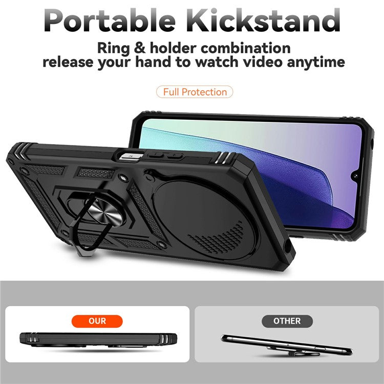 Phone Case For Xiaomi Redmi 14R 5G / 14C 4G / Poco C75 4G PC + TPU Phone Cover with Lens Protection Kickstand - Black