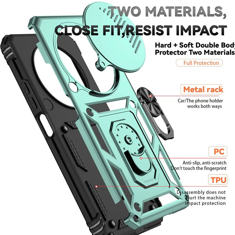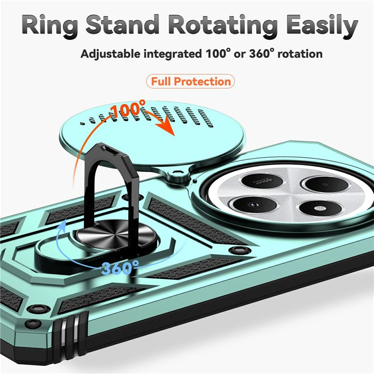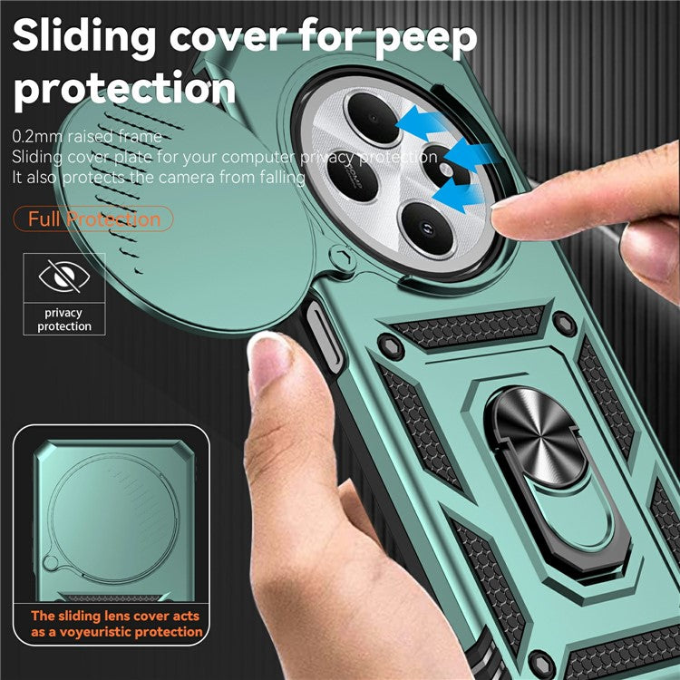 Phone Case For Xiaomi Redmi 14R 5G / 14C 4G / Poco C75 4G PC + TPU Phone Cover with Lens Protection Kickstand - Blackish Green