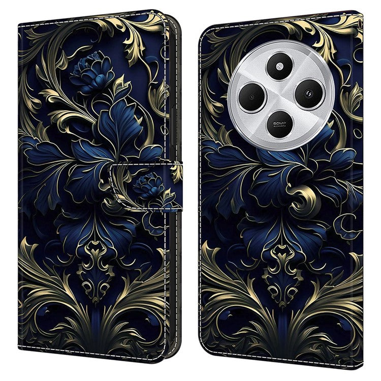 PU Leather Case For Xiaomi Redmi 14C 4G / 14R 5G / Poco C75 4G Wallet Phone Cover with Stand - Blue Flower