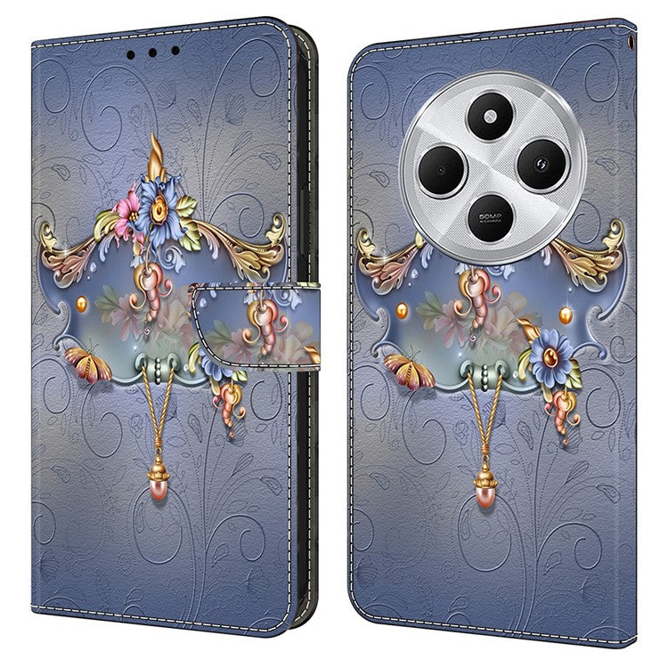 PU Leather Case For Xiaomi Redmi 14C 4G / 14R 5G / Poco C75 4G Wallet Phone Cover with Stand - Carving Flower