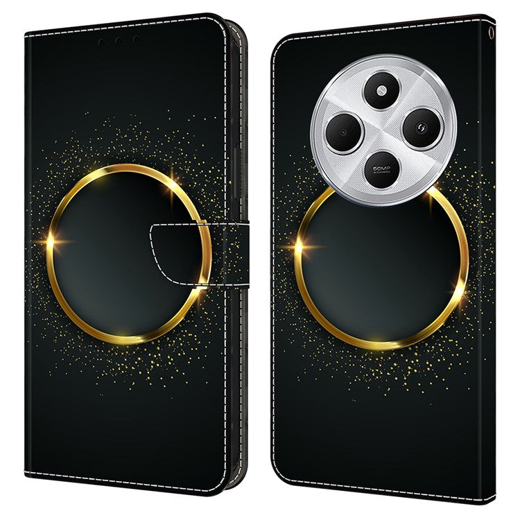 PU Leather Case For Xiaomi Redmi 14C 4G / 14R 5G / Poco C75 4G Wallet Phone Cover with Stand - Gold Ring