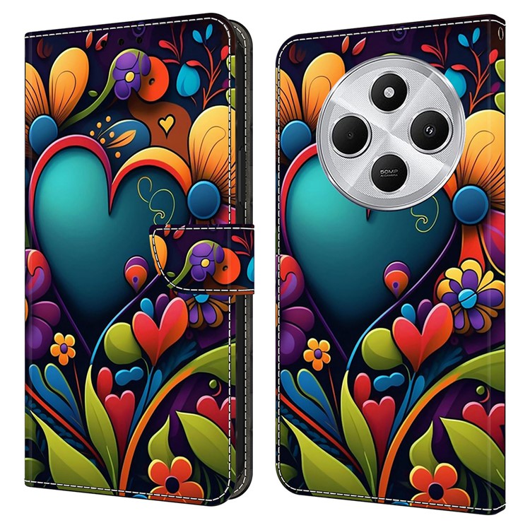 PU Leather Case For Xiaomi Redmi 14C 4G / 14R 5G / Poco C75 4G Wallet Phone Cover with Stand - Paint Flower