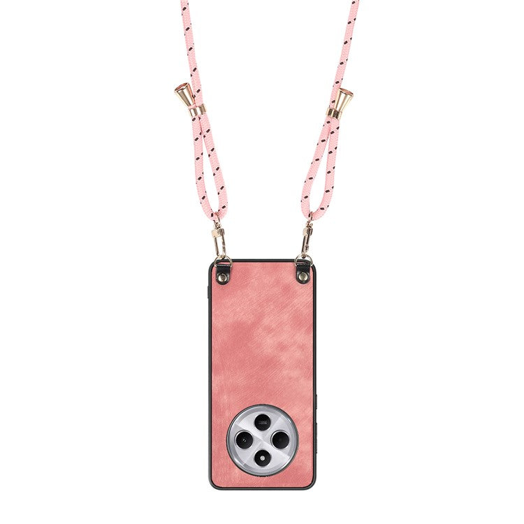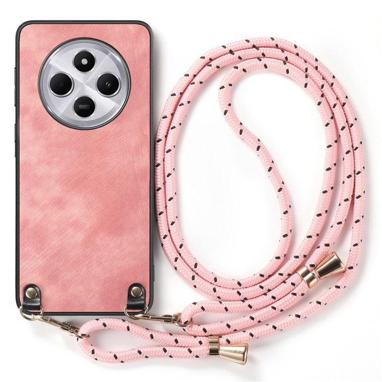 Retro Texture Phone Case For Xiaomi Redmi 14C 4G / 14R 5G / Poco C75 4G Leather Coated PC+TPU Back Cover with Hanging Rope - Pink