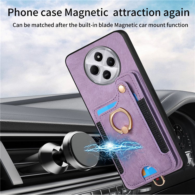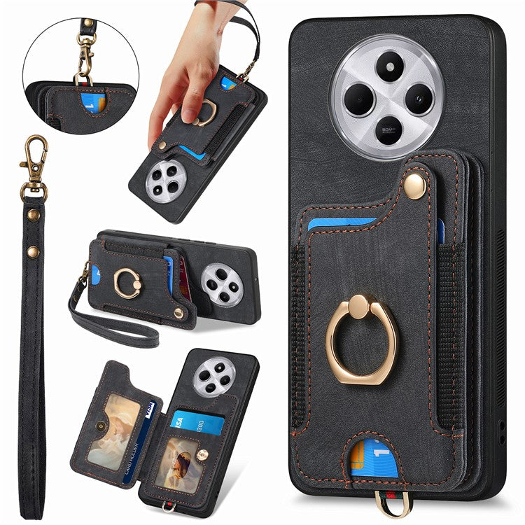 RFID Blocking Case For Xiaomi Redmi 14C 4G / 14R 5G / Poco C75 4G Handbag Leather+TPU Phone Cover Card Slots, Ring Holder - Black