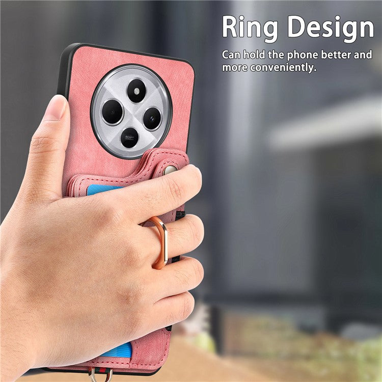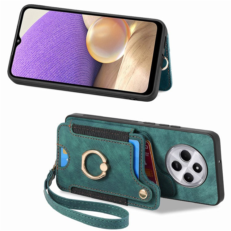 RFID Blocking Case For Xiaomi Redmi 14C 4G / 14R 5G / Poco C75 4G Handbag Leather+TPU Phone Cover Card Slots, Ring Holder - Green