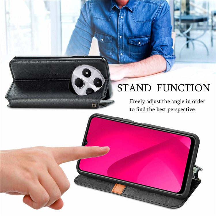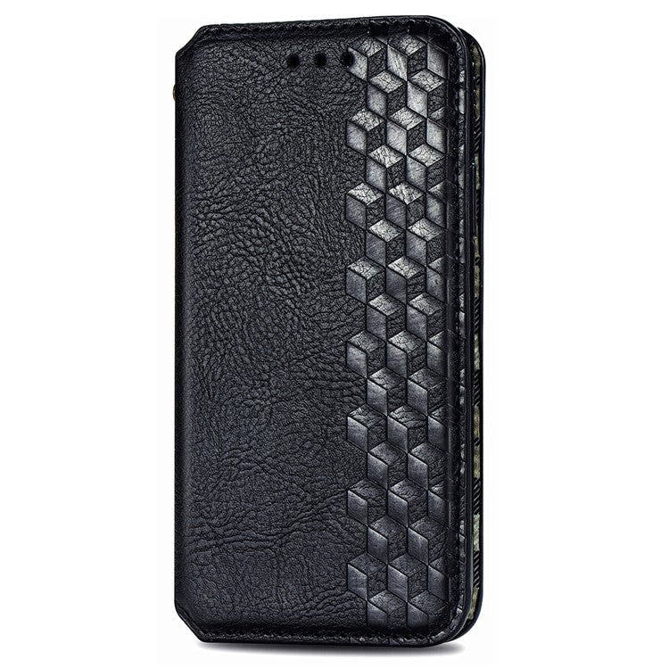 Rhombus Imprint for Xiaomi Redmi 14C 4G / 14R 5G / Poco C75 4G Case PU Leather Wallet Phone Cover - Black