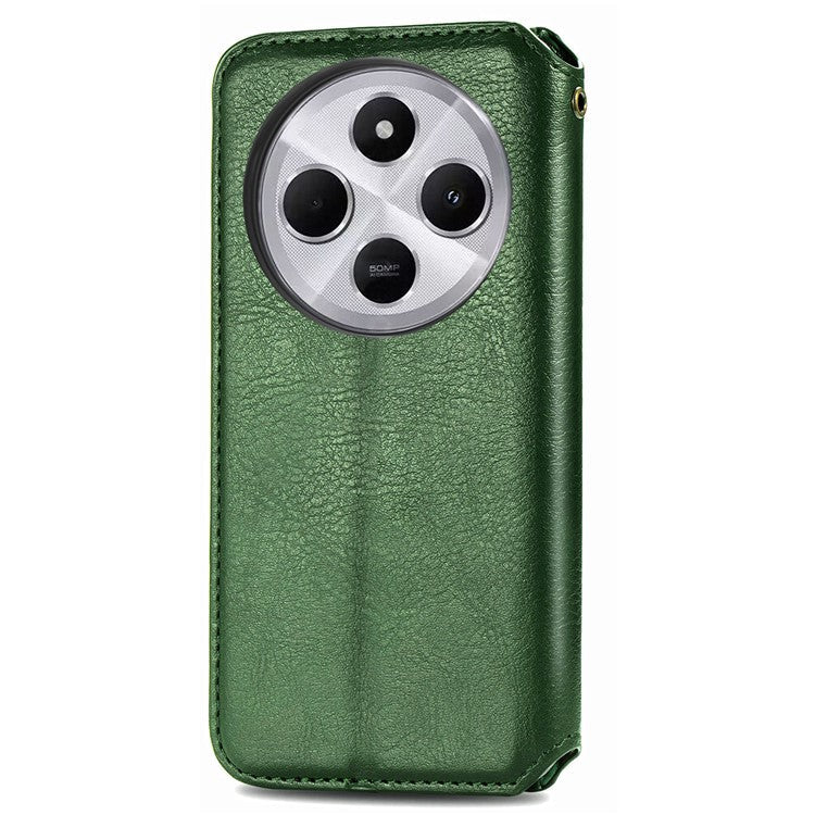 Rhombus Imprint for Xiaomi Redmi 14C 4G / 14R 5G / Poco C75 4G Case PU Leather Wallet Phone Cover - Green
