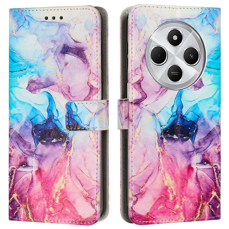 Stand Case for Xiaomi Redmi 14C 4G / 14R 5G / A3 Pro 4G / Poco C75 4G Marble Pattern PU Leather Wallet Phone Cover - Pink / Purple