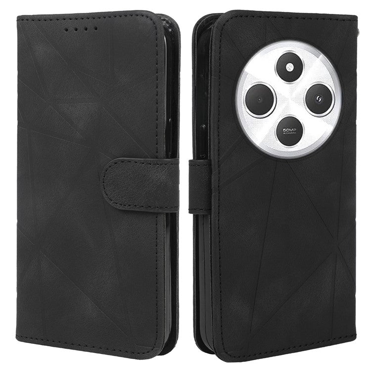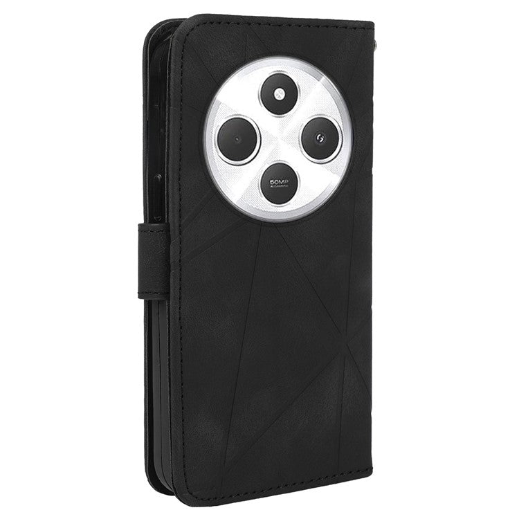 Stand Phone Case for Xiaomi Poco C75 4G / Redmi 14R 5G / 14C 4G Line Pattern Leather Cover - Black