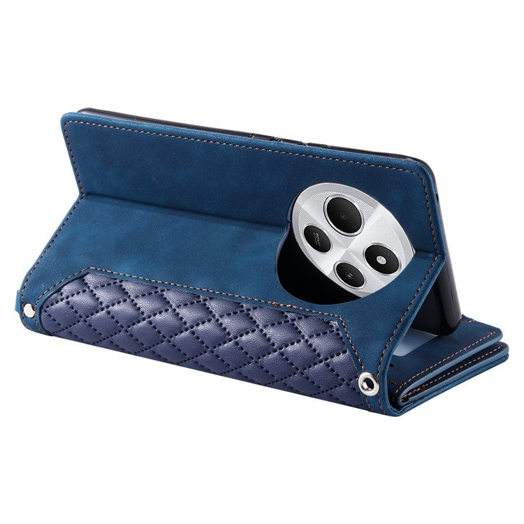 Style 005 For Xiaomi Poco C75 4G / Redmi 14R 5G / 14C 4G Zipper Wallet Case Rhombus Stitching Line PU Leather Phone Cover - Blue