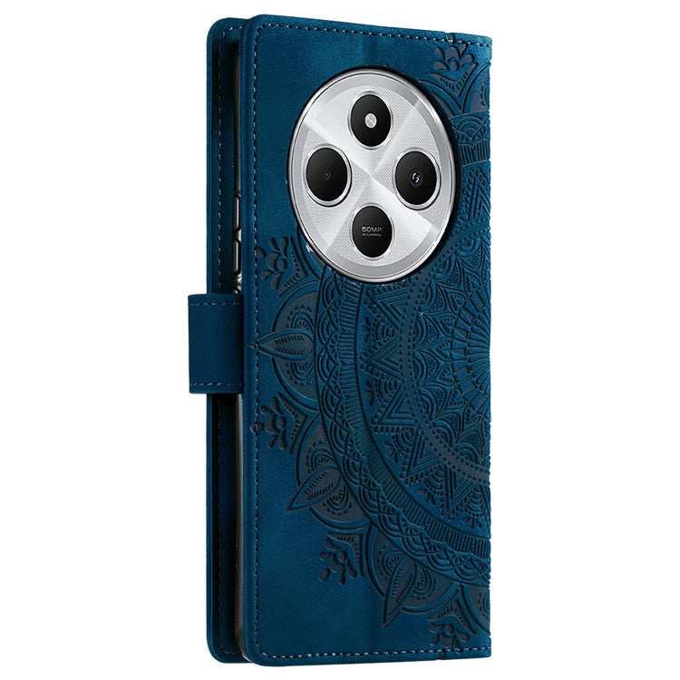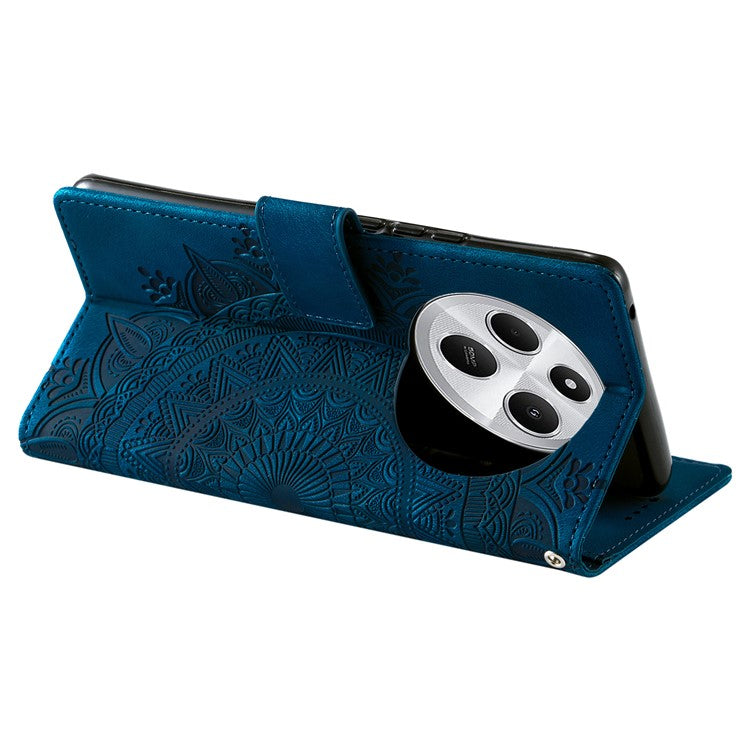 Style 018 Phone Case For Xiaomi Redmi 14C 4G / 14R 5G / Poco C75 4G Imprinted Totem Skin Feel Wallet Leather Cover - Blue