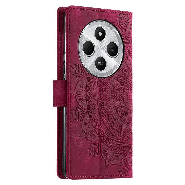 Style 018 Phone Case For Xiaomi Redmi 14C 4G / 14R 5G / Poco C75 4G Imprinted Totem Skin Feel Wallet Leather Cover - Rose