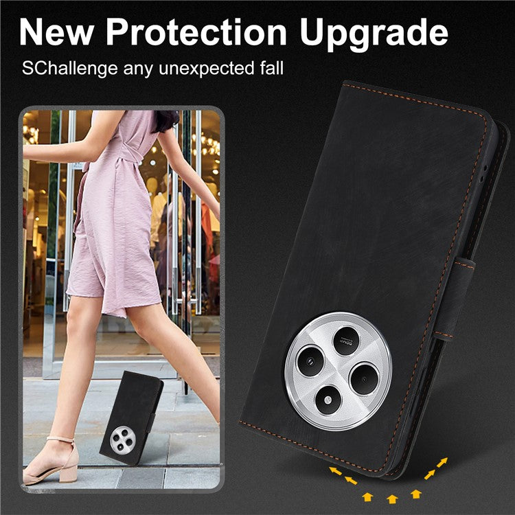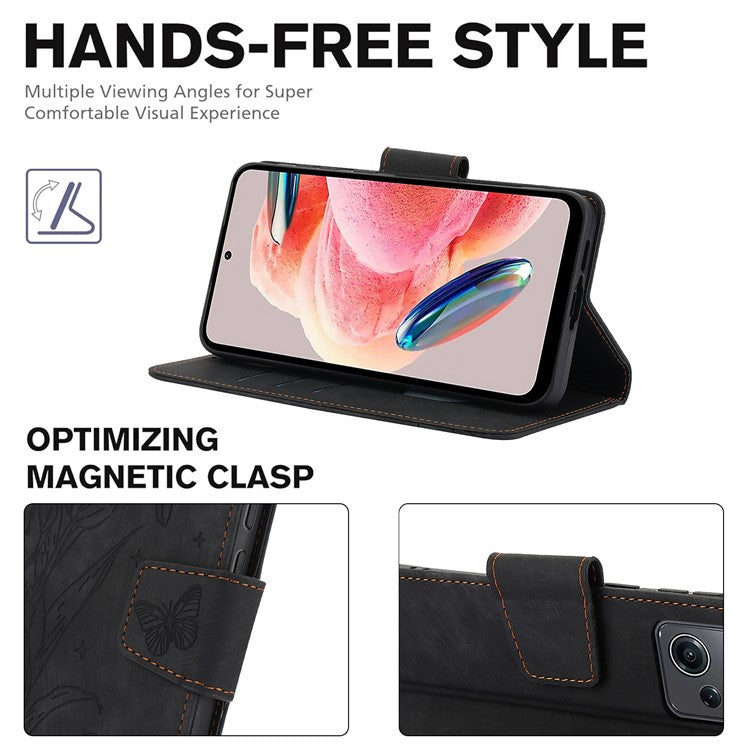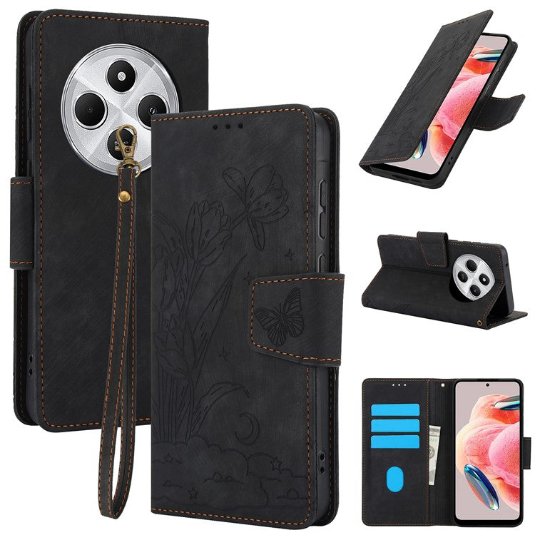 SY-001 For Xiaomi Poco C75 4G / Redmi 14R 5G / 14C 4G Case Flower Butterfly Leather Wallet Phone Cover with Hand Strap - Black