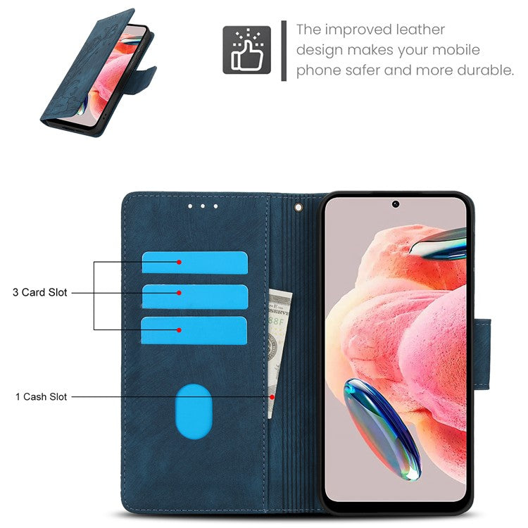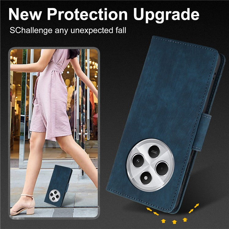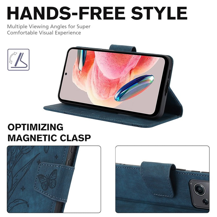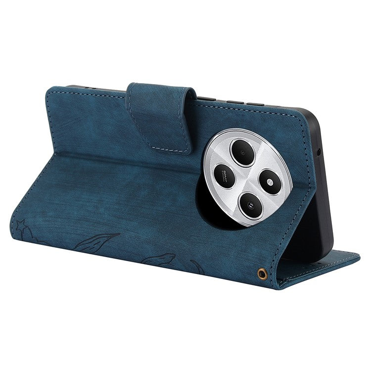 SY-001 For Xiaomi Poco C75 4G / Redmi 14R 5G / 14C 4G Case Flower Butterfly Leather Wallet Phone Cover with Hand Strap - Blue