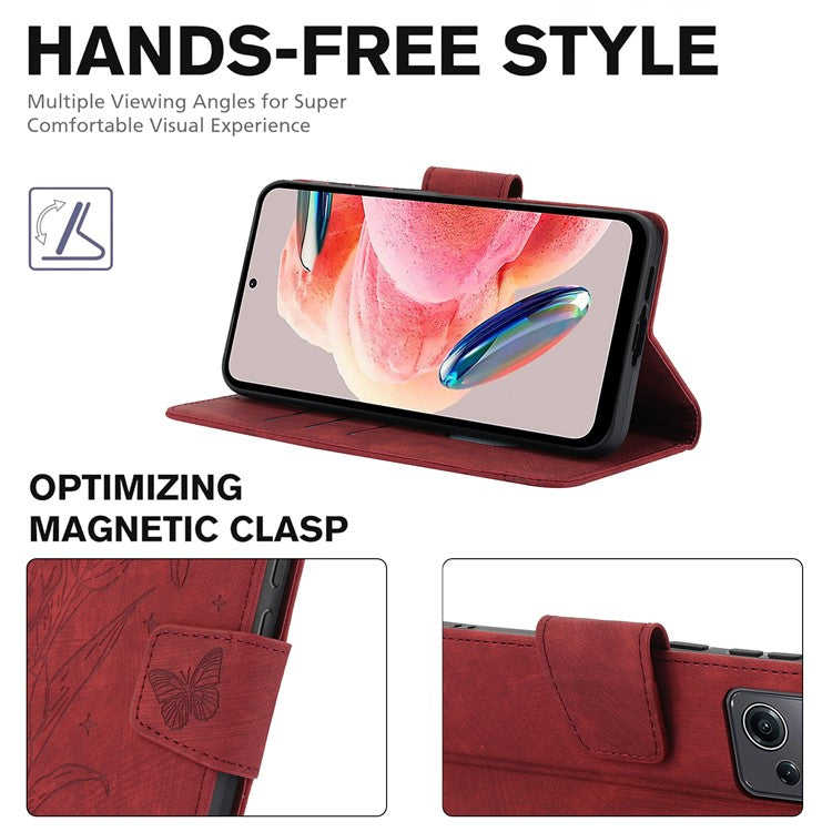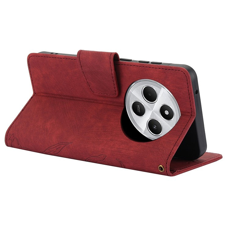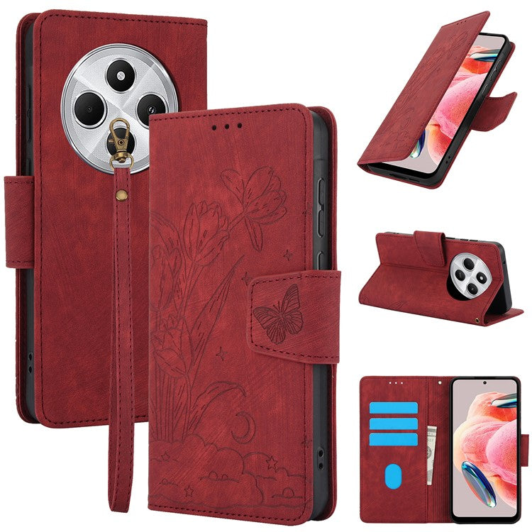SY-001 For Xiaomi Poco C75 4G / Redmi 14R 5G / 14C 4G Case Flower Butterfly Leather Wallet Phone Cover with Hand Strap - Red