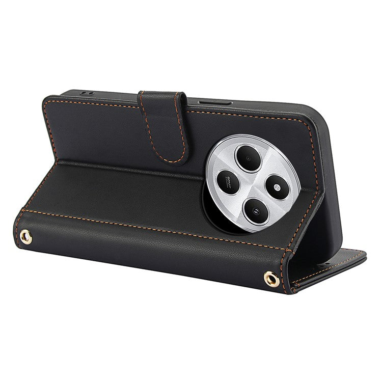 SY-003 For Xiaomi Poco C75 4G / Redmi 14R 5G / 14C 4G Case PU Leather Stand View Phone Wallet Cover with Shoulder Strap - Black