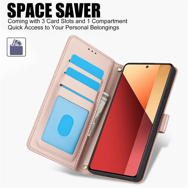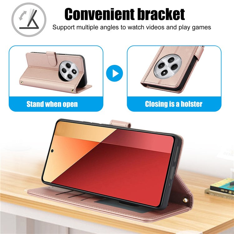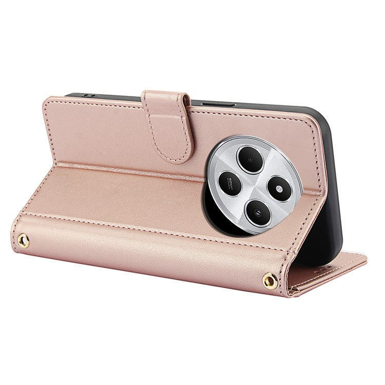 SY-003 For Xiaomi Poco C75 4G / Redmi 14R 5G / 14C 4G Case PU Leather Stand View Phone Wallet Cover with Shoulder Strap - Pink