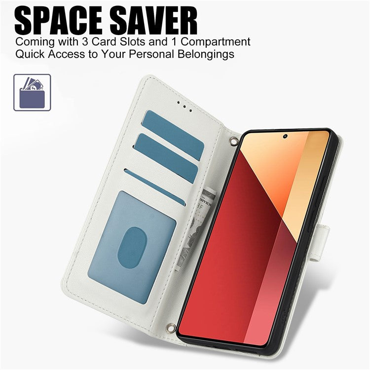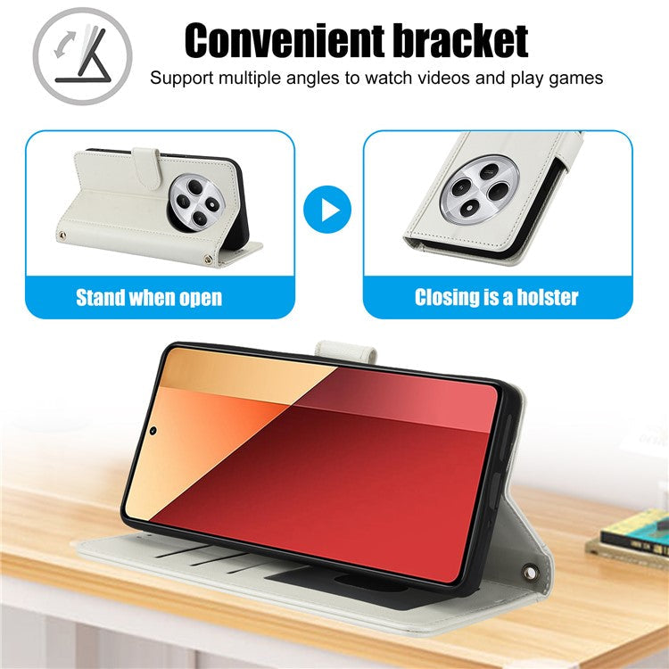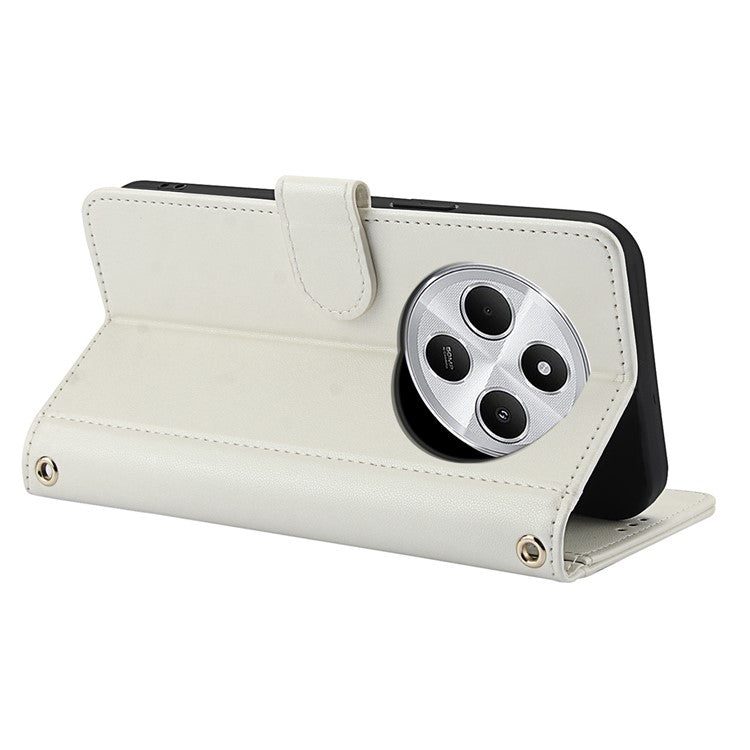 SY-003 For Xiaomi Poco C75 4G / Redmi 14R 5G / 14C 4G Case PU Leather Stand View Phone Wallet Cover with Shoulder Strap - White