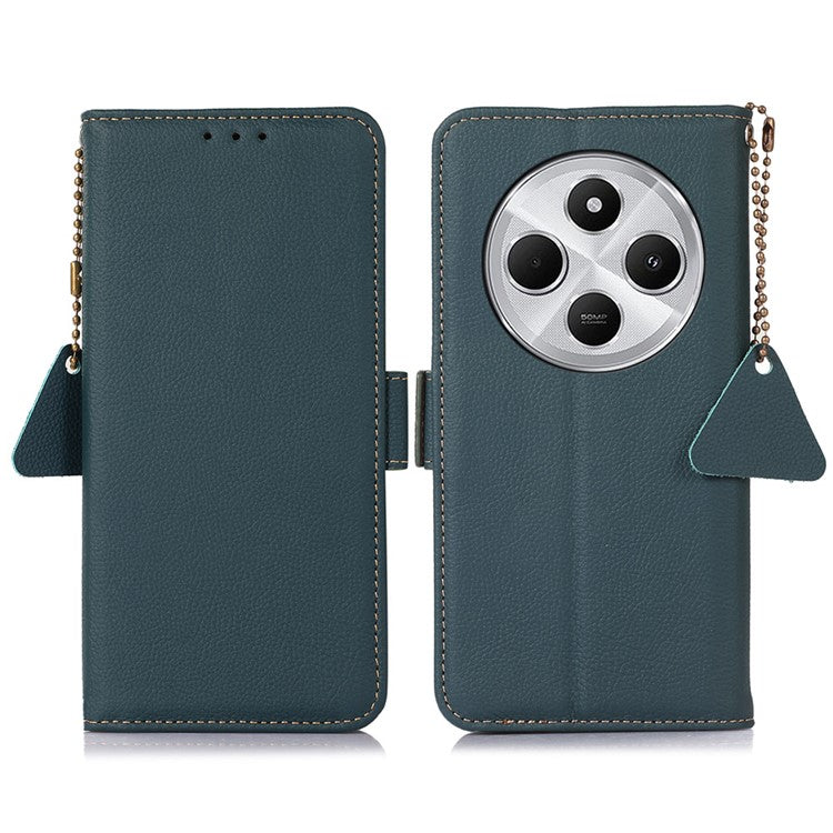TJ For Xiaomi Redmi 14C 4G Case RFID Blocking Genuine Cow Leather Phone Cover - Green