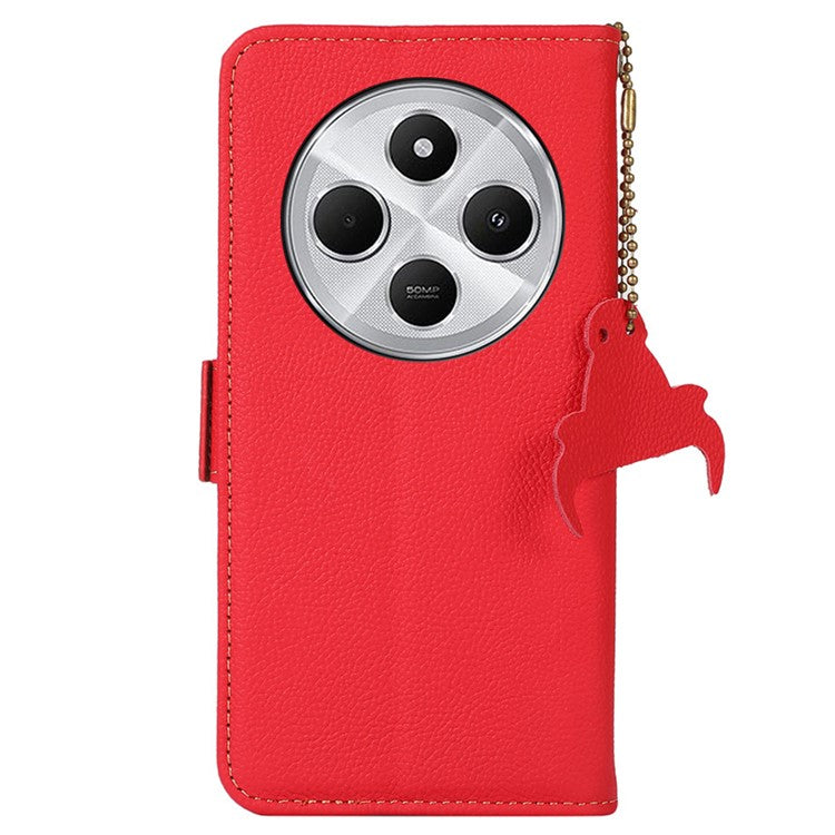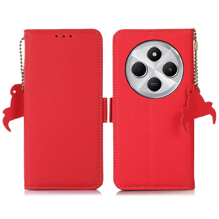TJ For Xiaomi Redmi 14C 4G Case RFID Blocking Genuine Cow Leather Phone Cover - Red