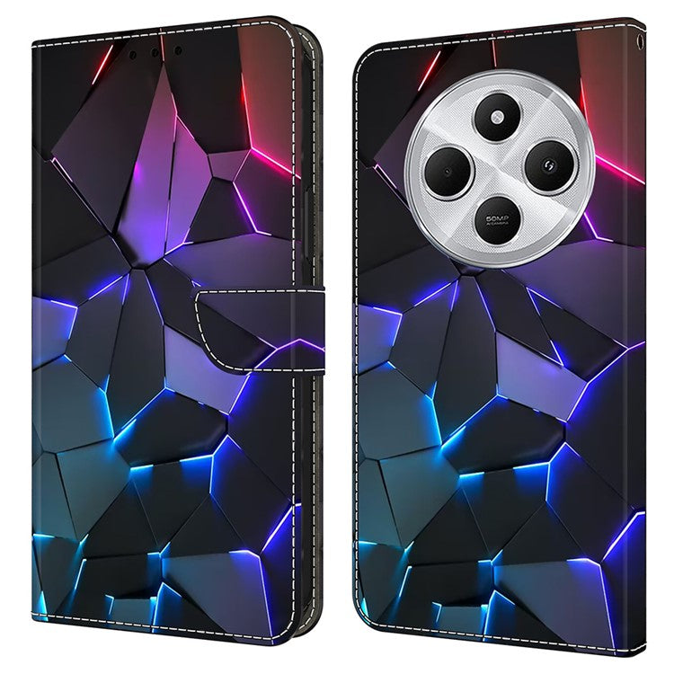 TPU+PU Leather Flip Phone Case For Xiaomi Redmi 14C 4G / 14R 5G / Poco C75 4G Pattern Printed Protective Cover - Blue Cracks