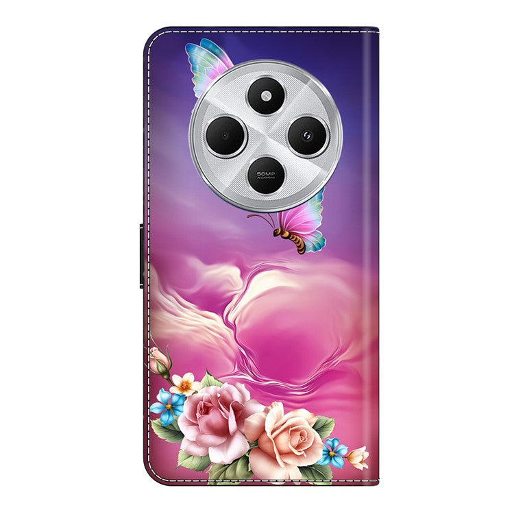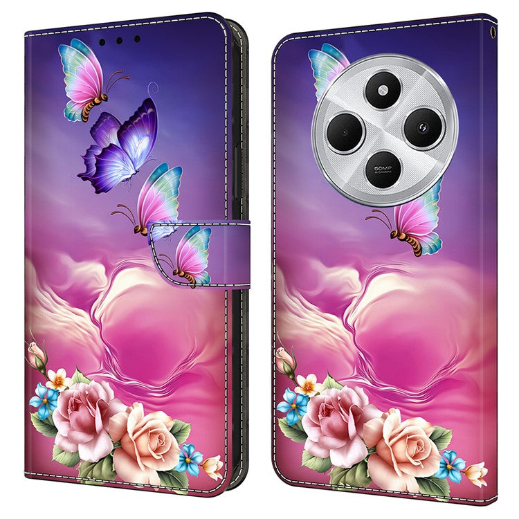 TPU+PU Leather Flip Phone Case For Xiaomi Redmi 14C 4G / 14R 5G / Poco C75 4G Pattern Printed Protective Cover - Butterfly Flower