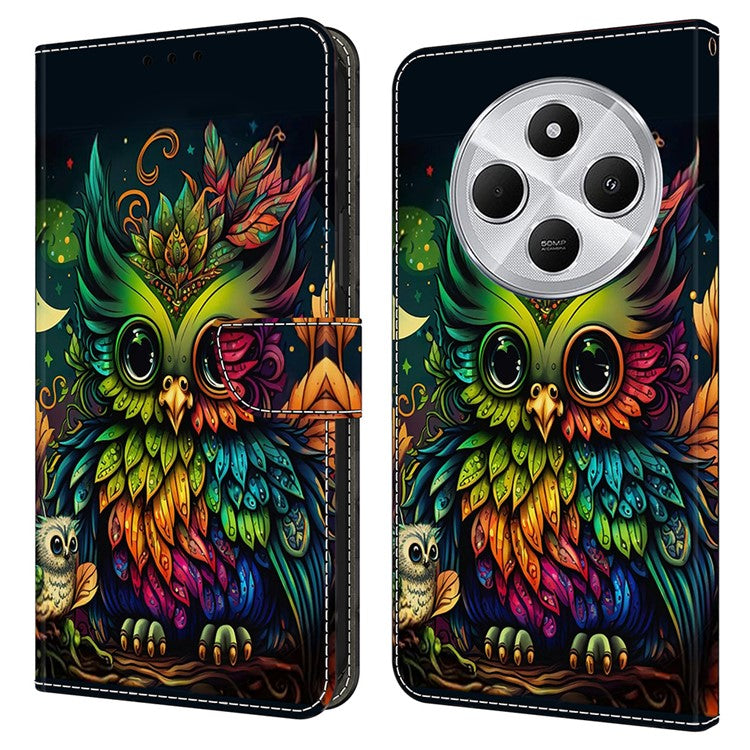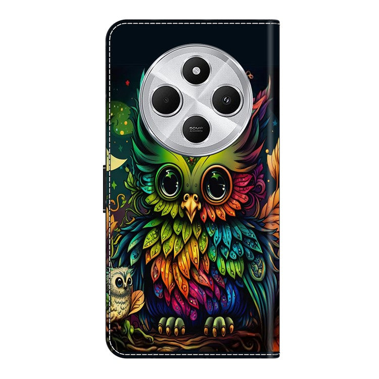 TPU+PU Leather Flip Phone Case For Xiaomi Redmi 14C 4G / 14R 5G / Poco C75 4G Pattern Printed Protective Cover - Colorful Owl