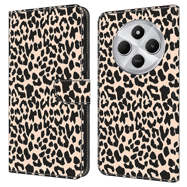 TPU+PU Leather Flip Phone Case For Xiaomi Redmi 14C 4G / 14R 5G / Poco C75 4G Pattern Printed Protective Cover - Leopard Print