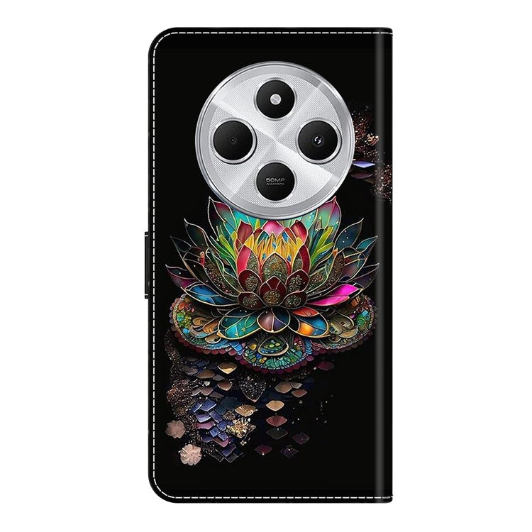 TPU+PU Leather Flip Phone Case For Xiaomi Redmi 14C 4G / 14R 5G / Poco C75 4G Pattern Printed Protective Cover - Lotus