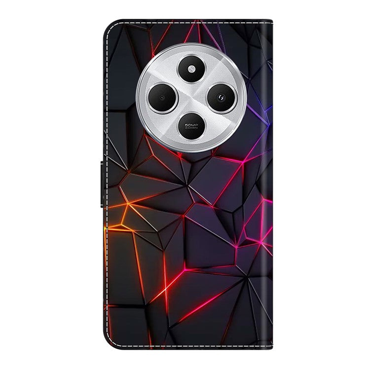 TPU+PU Leather Flip Phone Case For Xiaomi Redmi 14C 4G / 14R 5G / Poco C75 4G Pattern Printed Protective Cover - Red Cracks
