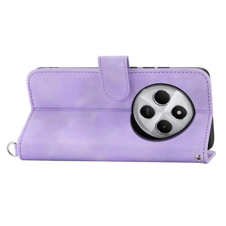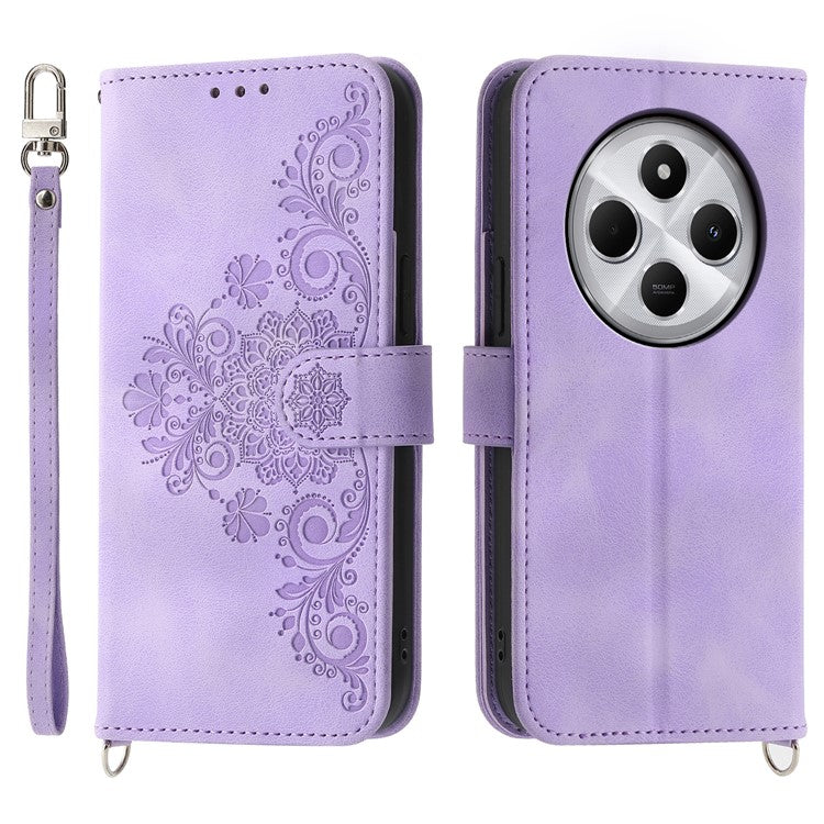 Wallet Case For Xiaomi Poco C75 4G / Redmi 14R 5G / 14C 4G Flower Pattern PU Leather Phone Cover with Strap - Light Purple