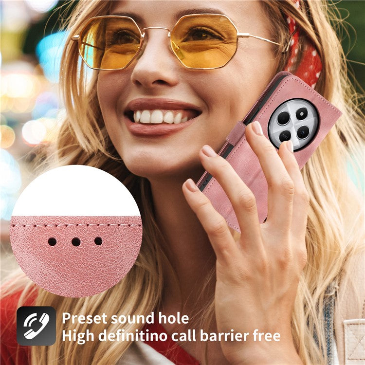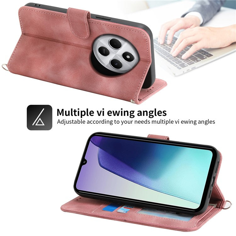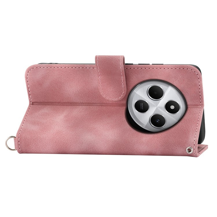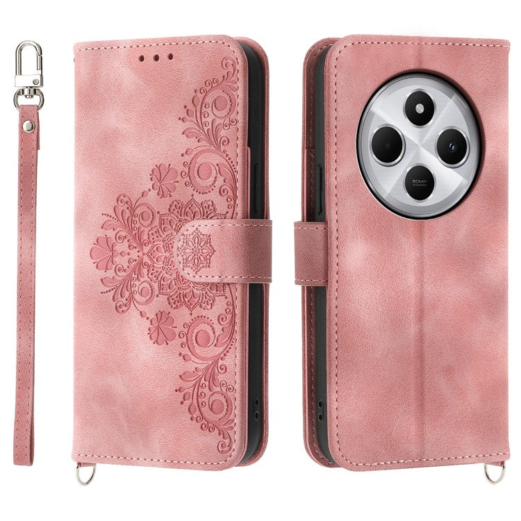 Wallet Case For Xiaomi Poco C75 4G / Redmi 14R 5G / 14C 4G Flower Pattern PU Leather Phone Cover with Strap - Pink