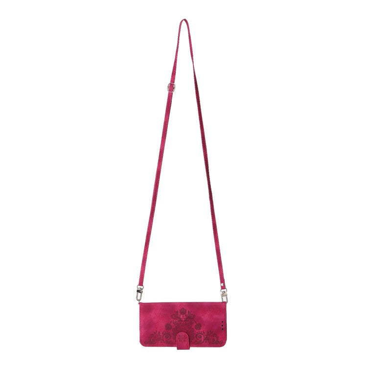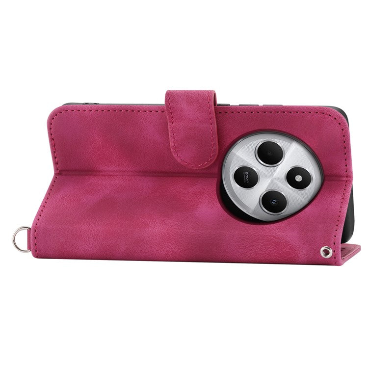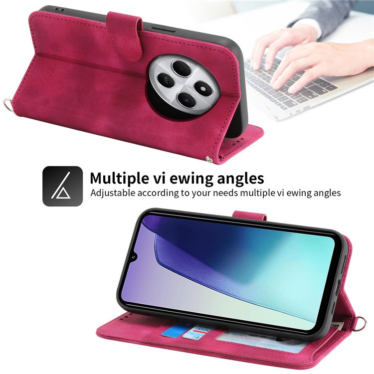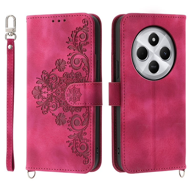 Wallet Case For Xiaomi Poco C75 4G / Redmi 14R 5G / 14C 4G Flower Pattern PU Leather Phone Cover with Strap - Wine Red