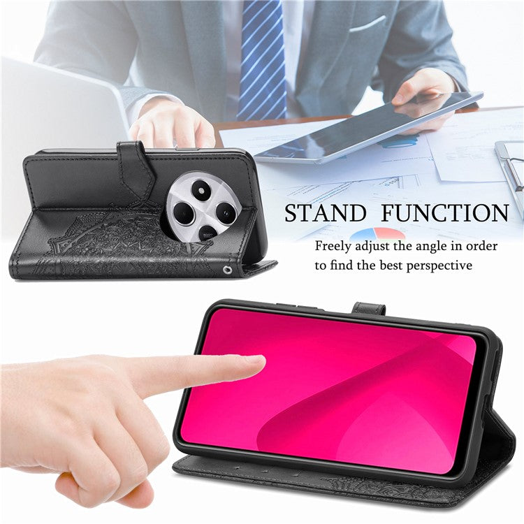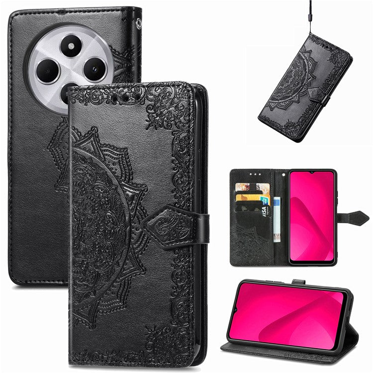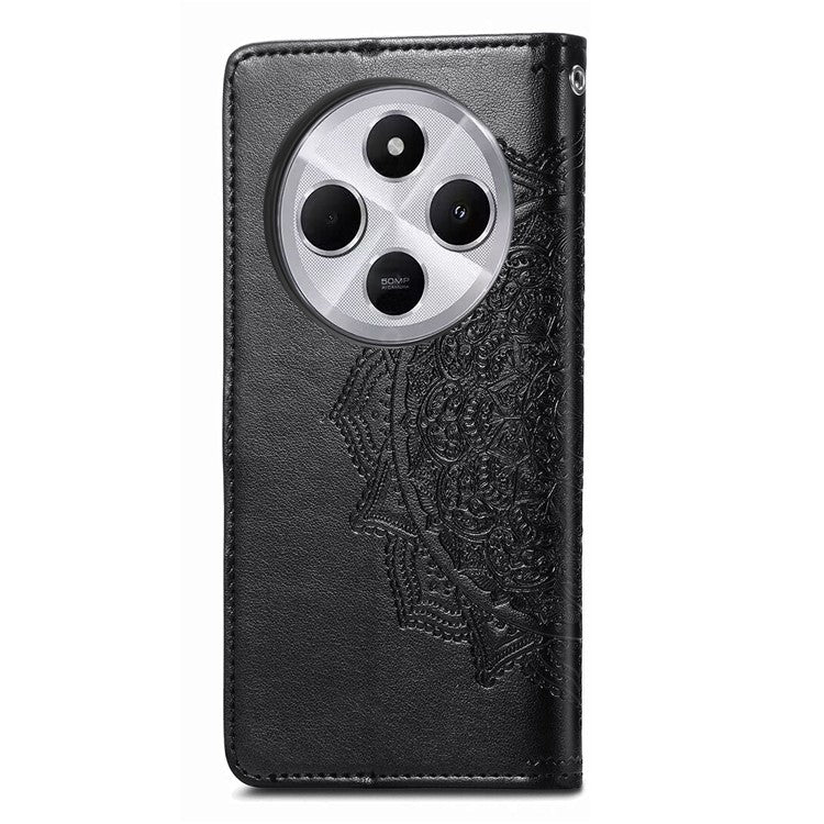 Wallet Phone Case For Xiaomi Redmi 14C 4G / 14R 5G / Poco C75 4G Mandala Flower Leather Phone Cover Stand View - Black