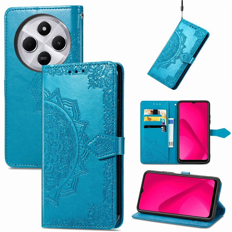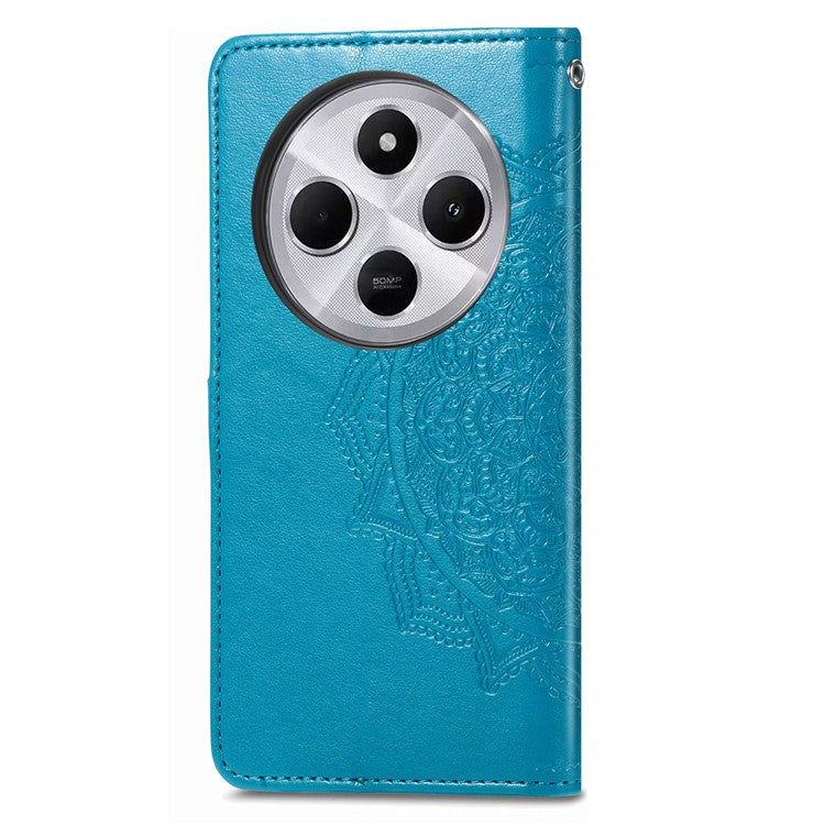 Wallet Phone Case For Xiaomi Redmi 14C 4G / 14R 5G / Poco C75 4G Mandala Flower Leather Phone Cover Stand View - Blue