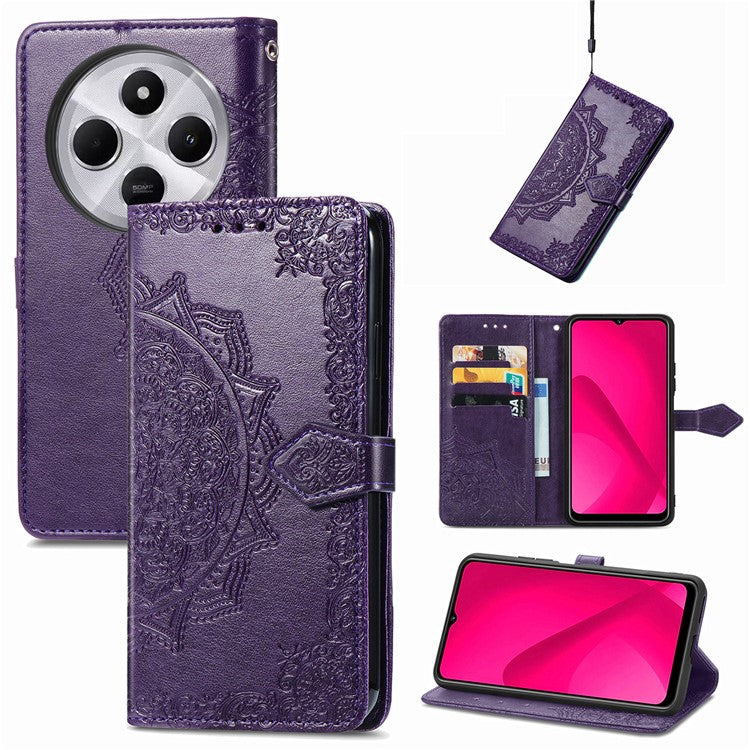 Wallet Phone Case For Xiaomi Redmi 14C 4G / 14R 5G / Poco C75 4G Mandala Flower Leather Phone Cover Stand View - Purple