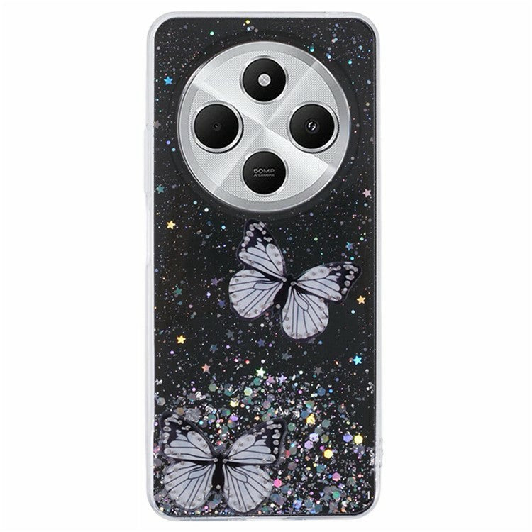 WANLONFENG AW Series TPU Case for Xiaomi Poco C75 4G / Redmi 14R 5G / 14C 4G PVC Butterfly Epoxy with Screen Film - Black