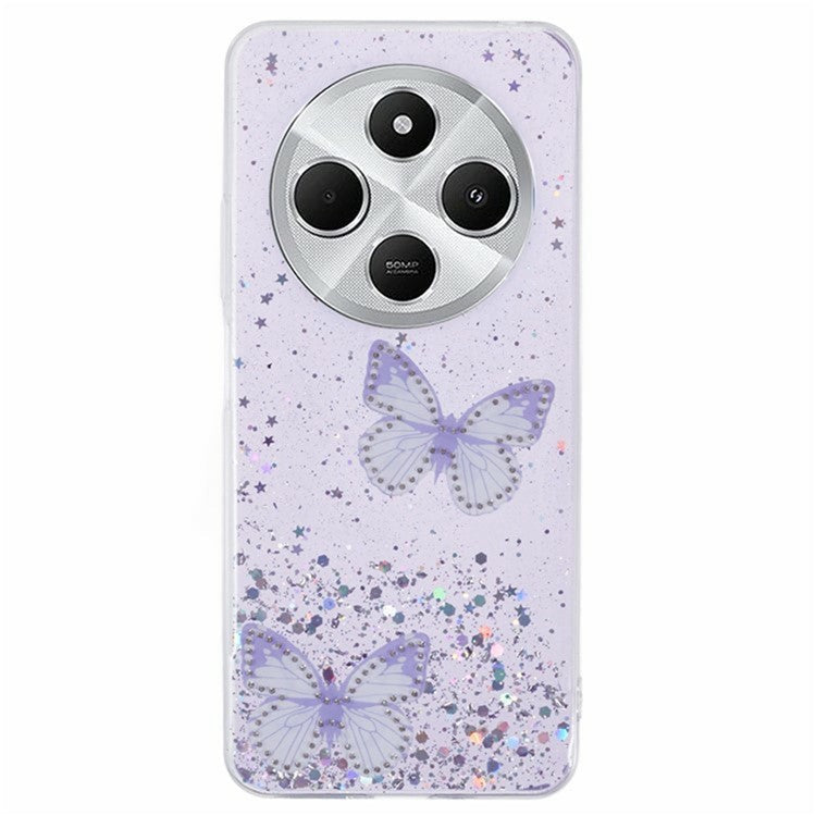WANLONFENG AW Series TPU Case for Xiaomi Poco C75 4G / Redmi 14R 5G / 14C 4G PVC Butterfly Epoxy with Screen Film - Purple