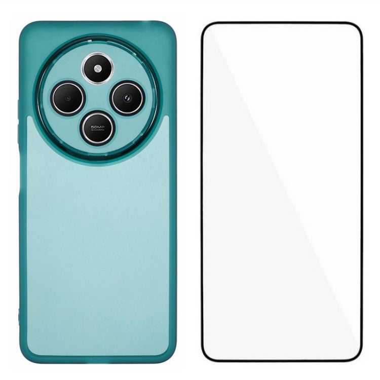 WANLONFENG DKSM Series for Xiaomi Redmi 14C 4G / 14R 5G / Poco C75 4G TPU Case Phone Cover with Tempered Glass - Transparent Army Green