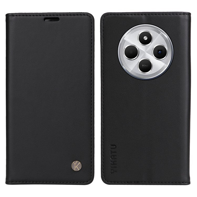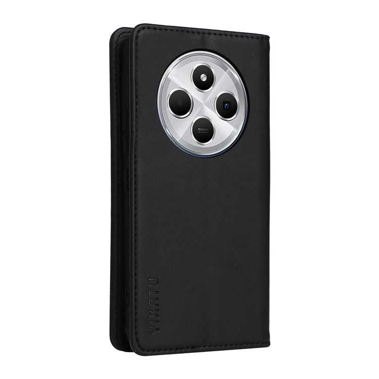 YIKATU YK-001 For Xiaomi Poco C75 4G / Redmi 14R 5G / 14C 4G Case Stand Leather Phone Cover Strong Magnetic Closure - Black
