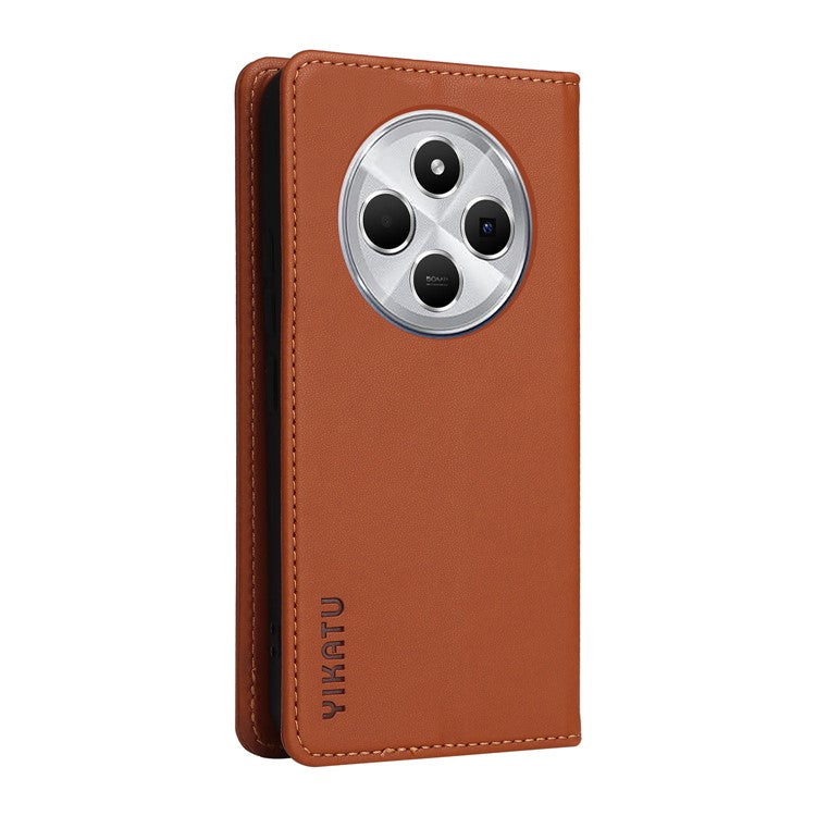 YIKATU YK-001 For Xiaomi Poco C75 4G / Redmi 14R 5G / 14C 4G Case Stand Leather Phone Cover Strong Magnetic Closure - Brown